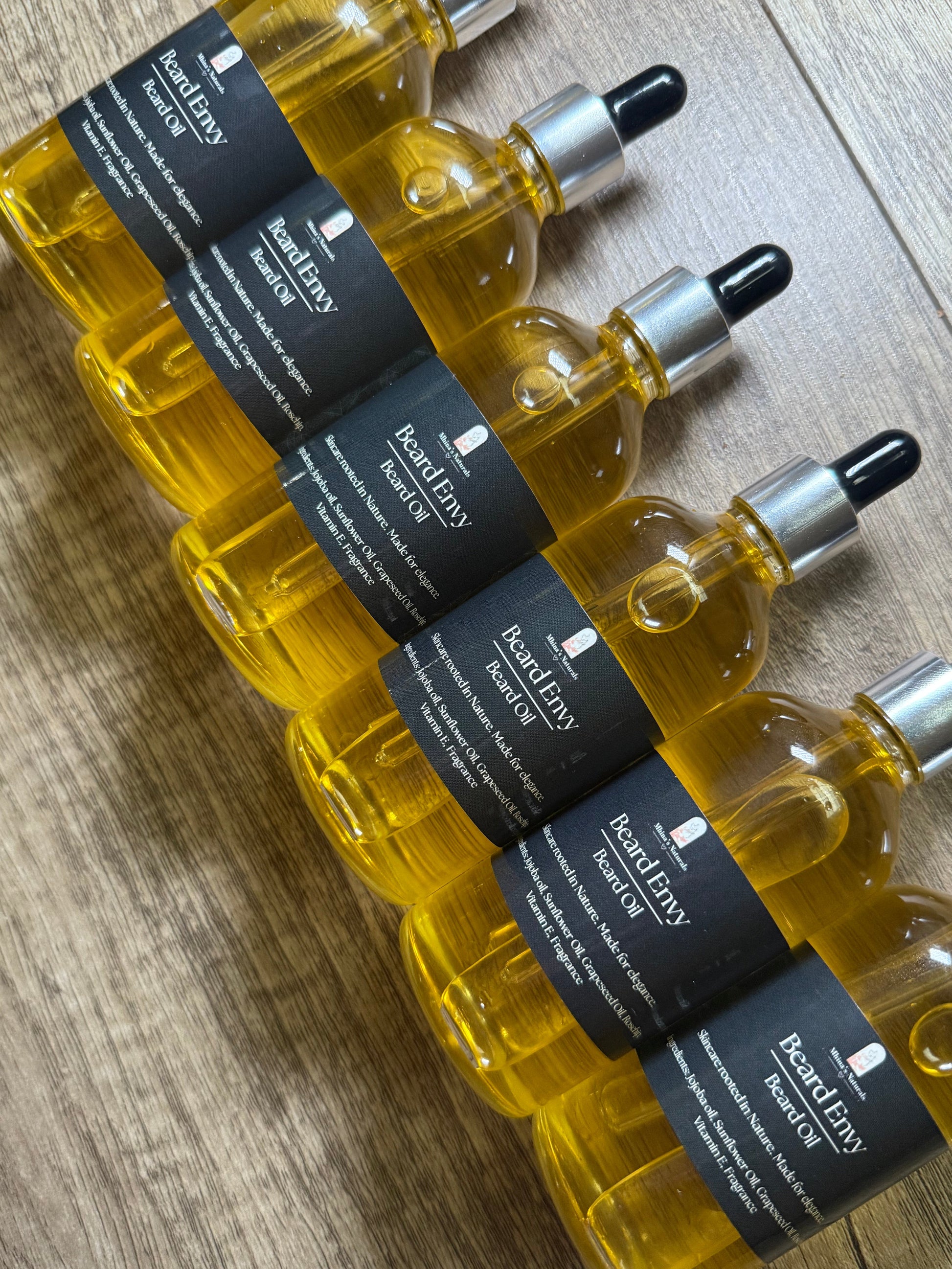 BEARD ENVY- This is your secret weapon for a soft, healthy, and irresistible beard. Crafted with nourishing rosehip and grapeseed oil, it deeply hydrates both your facial hair and skin, reducing itchiness and promoting strong, manageable growth. Infused with soothing lavender essential oil, it leaves a fresh, calming scent that’s subtle but unforgettable. Elevate your routine and let your beard do the talking.
